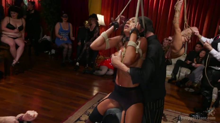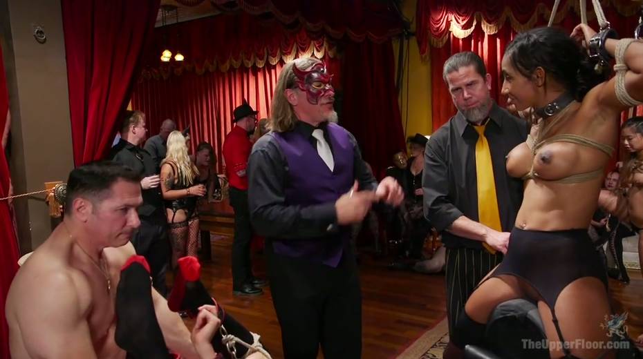 Tied up bitch Aiden Starr gets her pussy punished in public