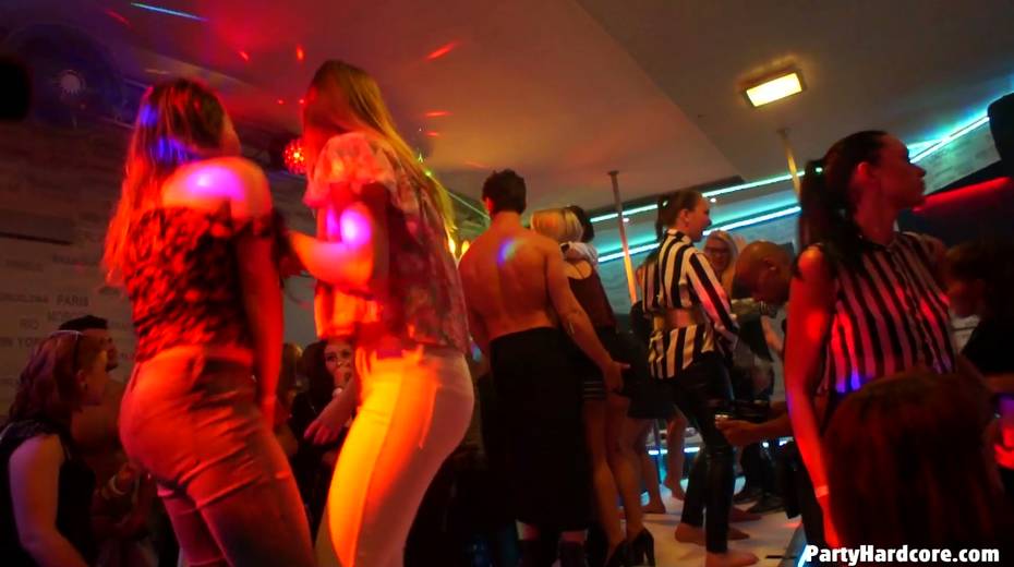 Hot blooded studs fuck nasty chicks right on the dance floor