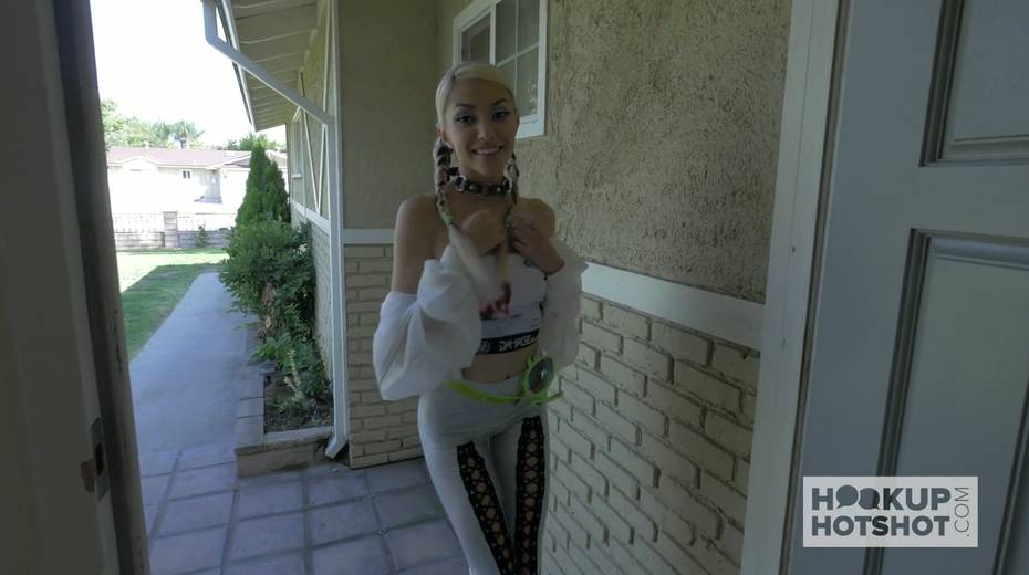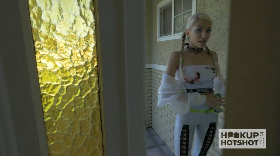 Blond hooker in extravagant outfit is fucked hard by stranger