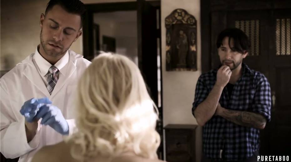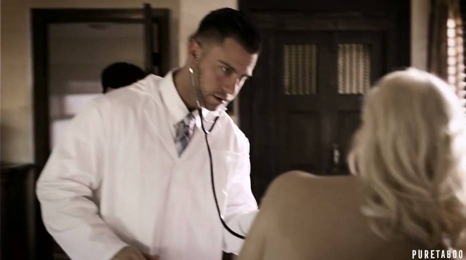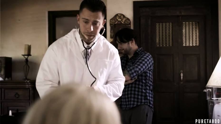 Horny blonde Chloe Cherry gets double penetrated by horny doctor and BF