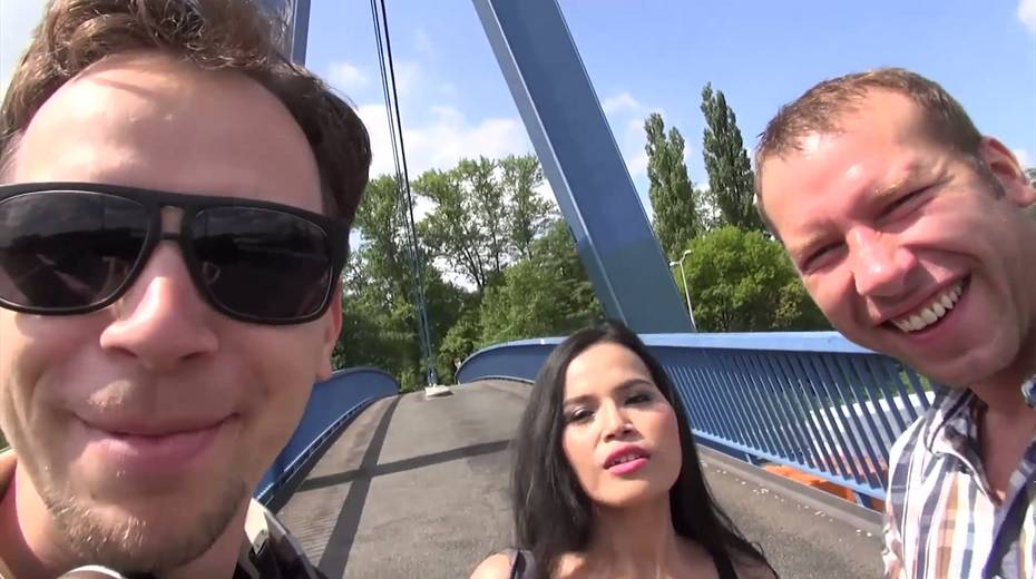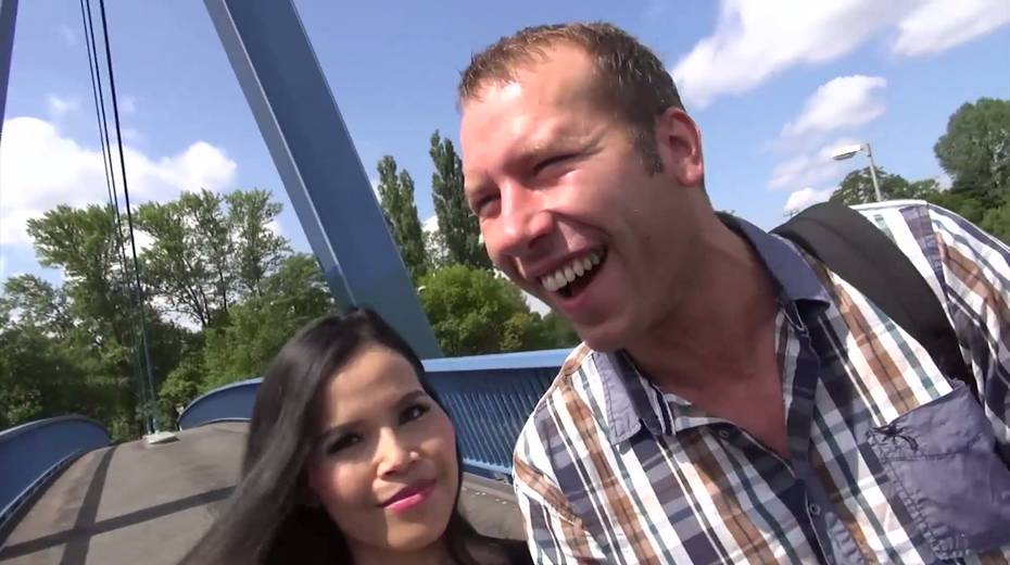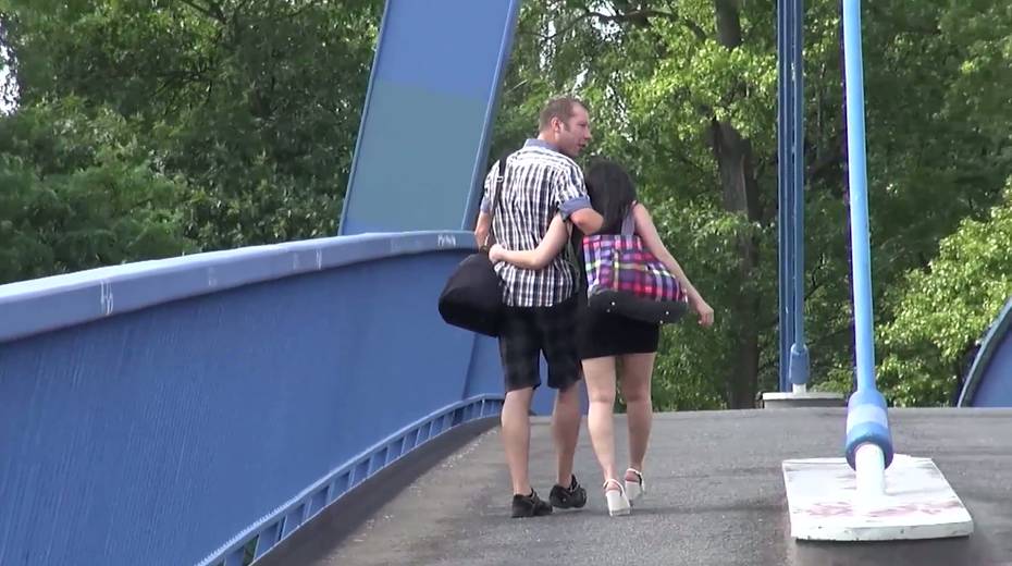 Brunette girl Ashley hooks up with her boyfriend right in the park