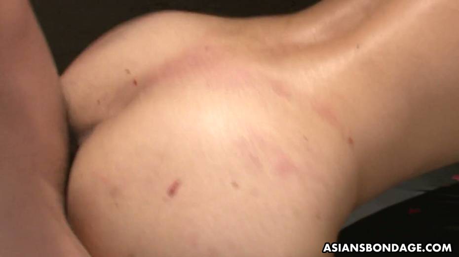 Several Asian dudes fuck tied up Asian bitch and punish her with hot candle wax