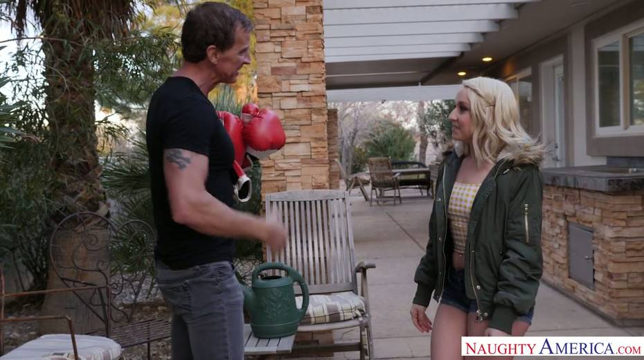 Young blonde Valerie White is having sex fun with elder neighbor
