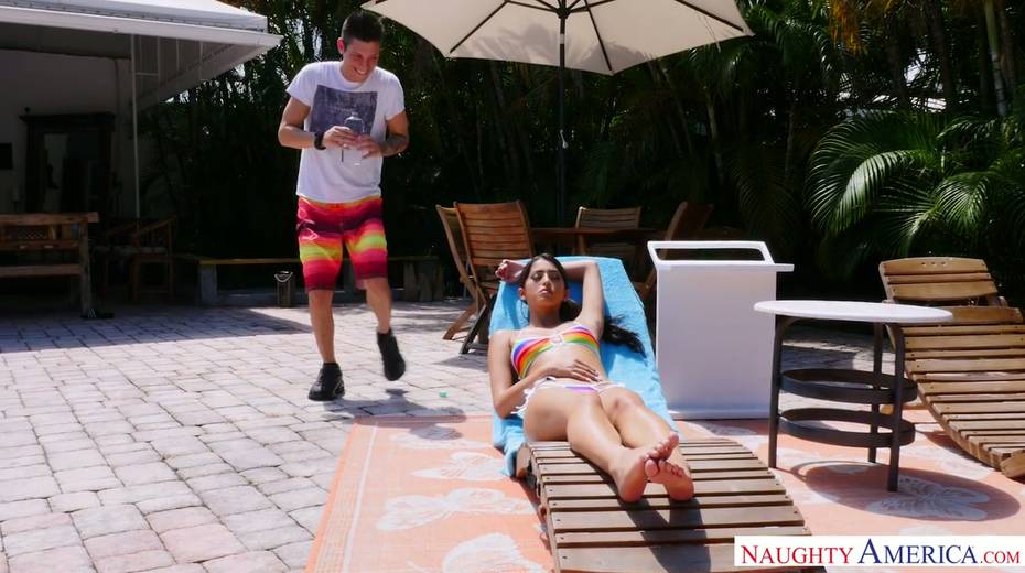 Sexy tanned babe Sophia Leone is having crazy sex with nerd neighbor