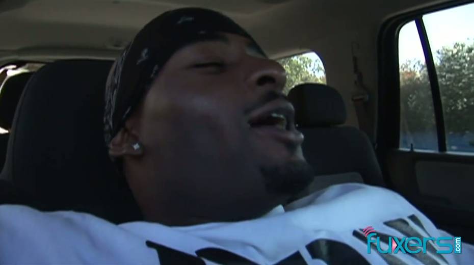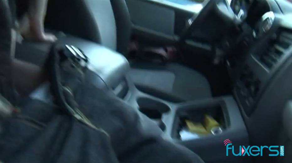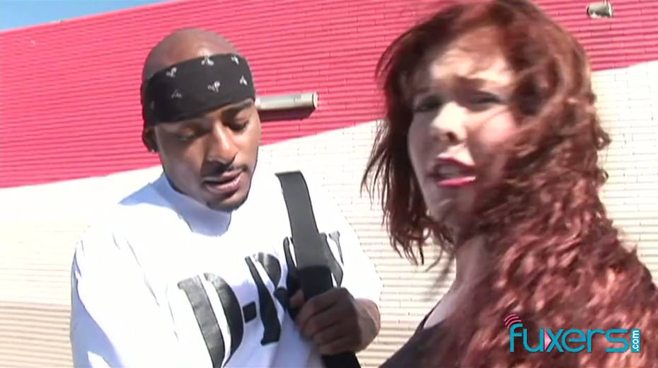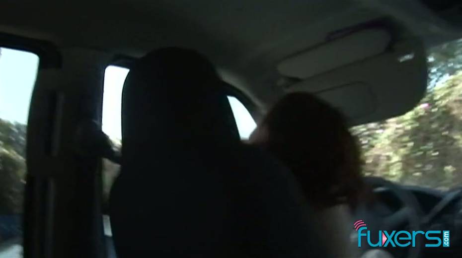 Red haired hooker with big boobs gives a blowjob in the car and gets her twat blacked