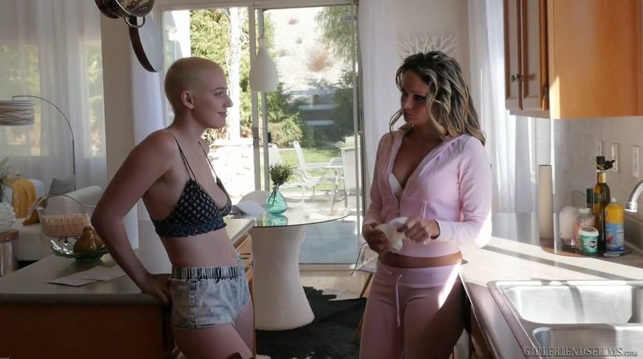 Bald headed dyke Riley Nixon finger fucks and licks appetizing pussy