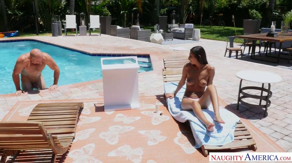 Bald headed stud J Mac fucks yummy sunbathing brunette Gianna Dior