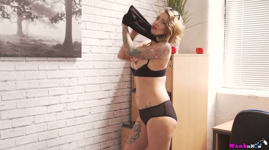 Tantalizing book keeper Charlie Z is masturbating her wet punani in the office