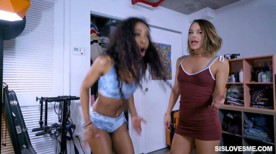 Horny stud fucks two bodacious babes eating each others pussies