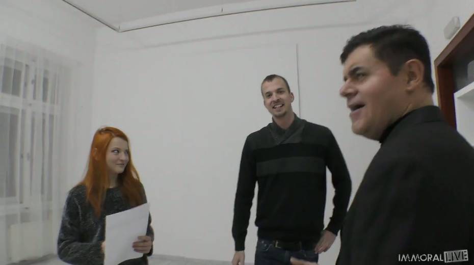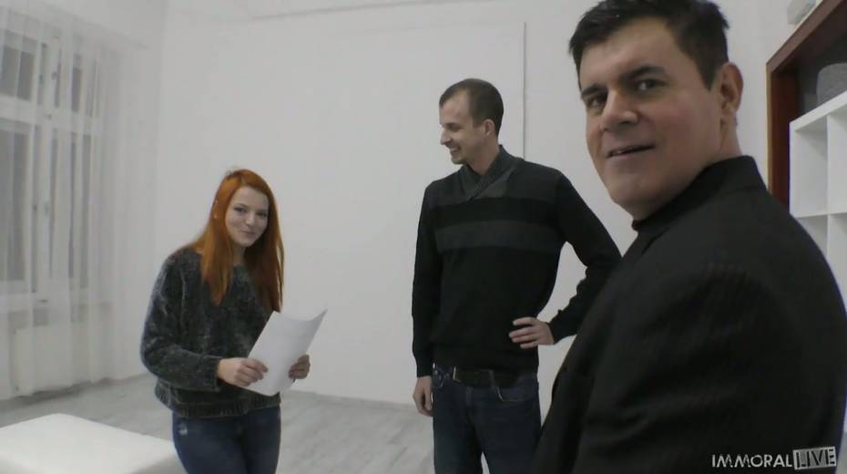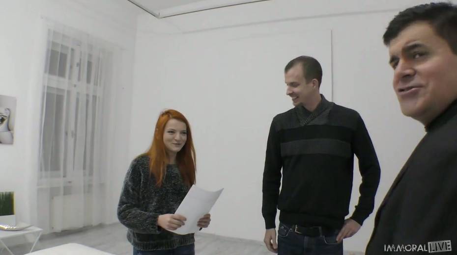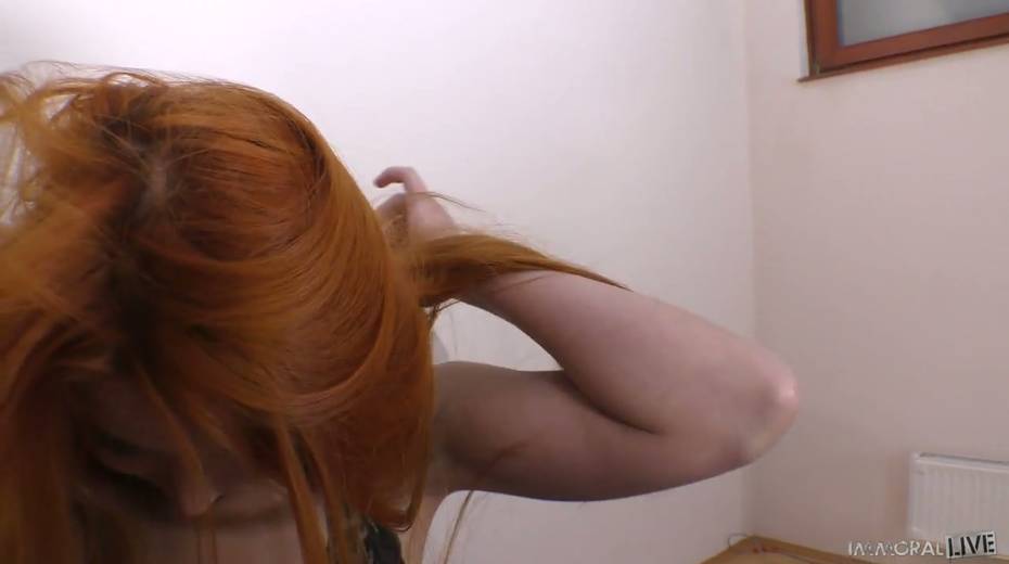 Red haired Ukrainian babe Katerin Belli gives her head and gets fucked