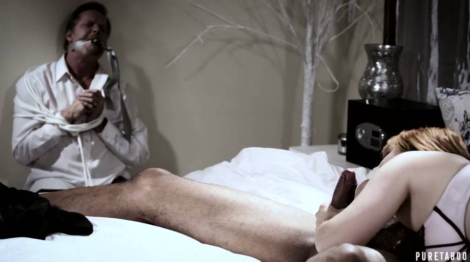 Red haired whore wife Penny Pax is impaled on a hard dick in front of her cuckold husband