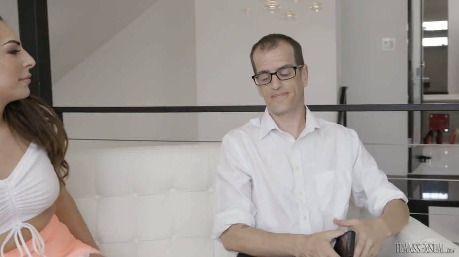 Nerd jerk is fucked and jizzed by bodacious shemale Chanel Santini
