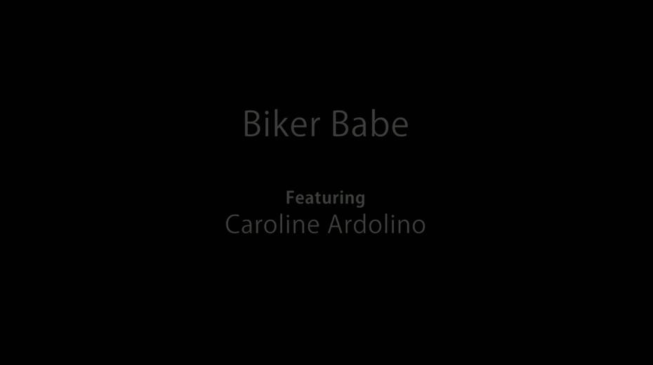 Sexually charged biker Caroline Ardolino takes off her clothes and touches pussy