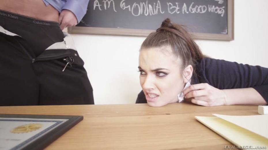 Bad girl in short kilt skirt Scarlet De Sade is fucked anally by her horny teacher