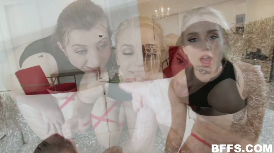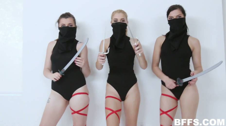 Horny dude fucks tree hot blooded ninjas and cums on their cute faces