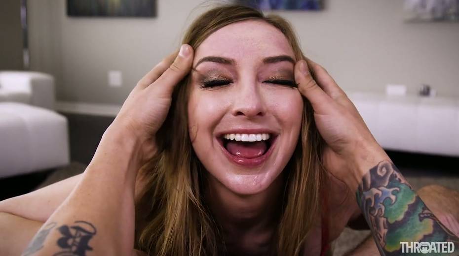 Bitch with smeared makeup Gracie Green gets messy facial after a deepthroat blowjob