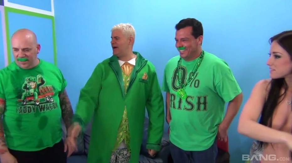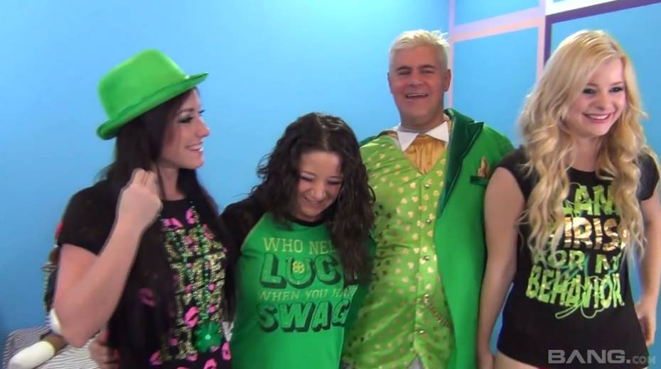 Slut Jennifer White spits sperm in opened GF's mouth after a steamy group sex