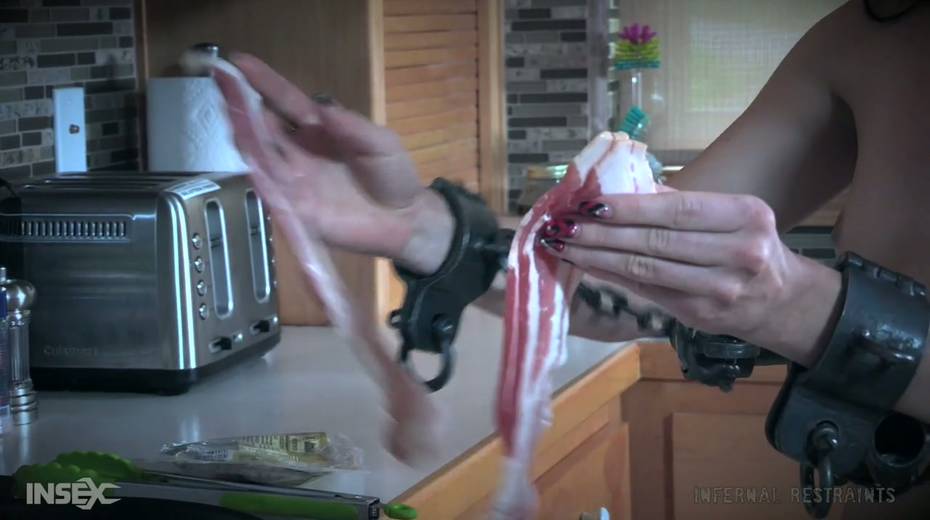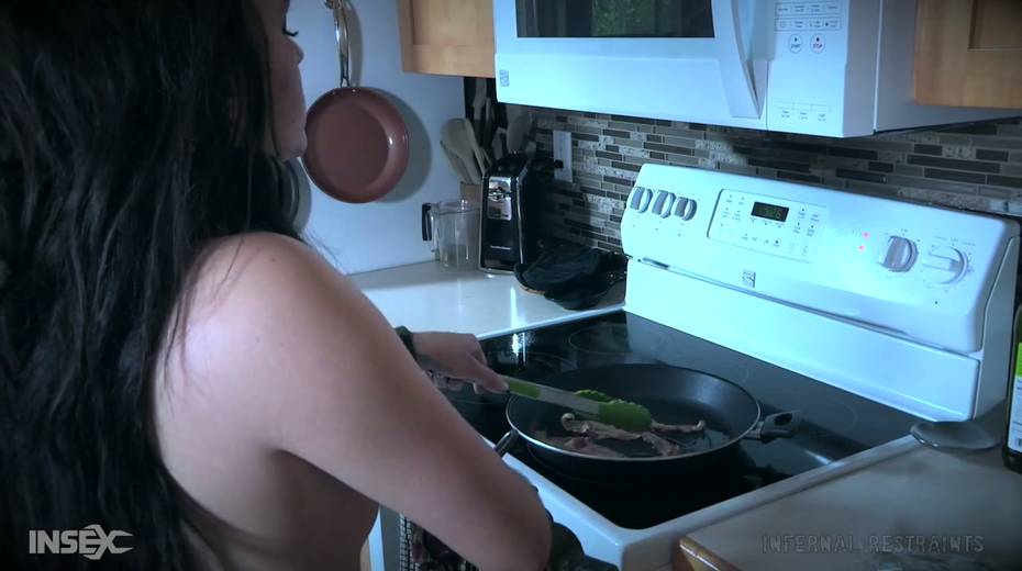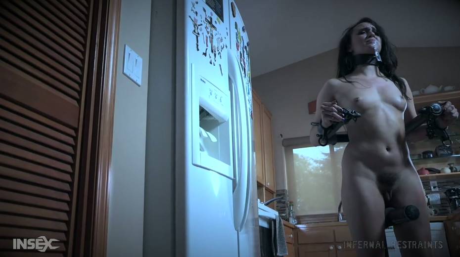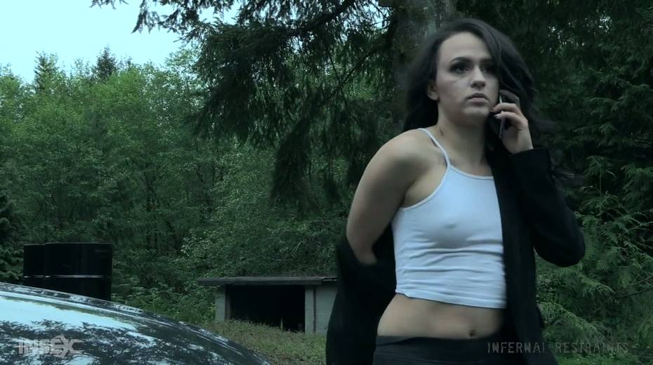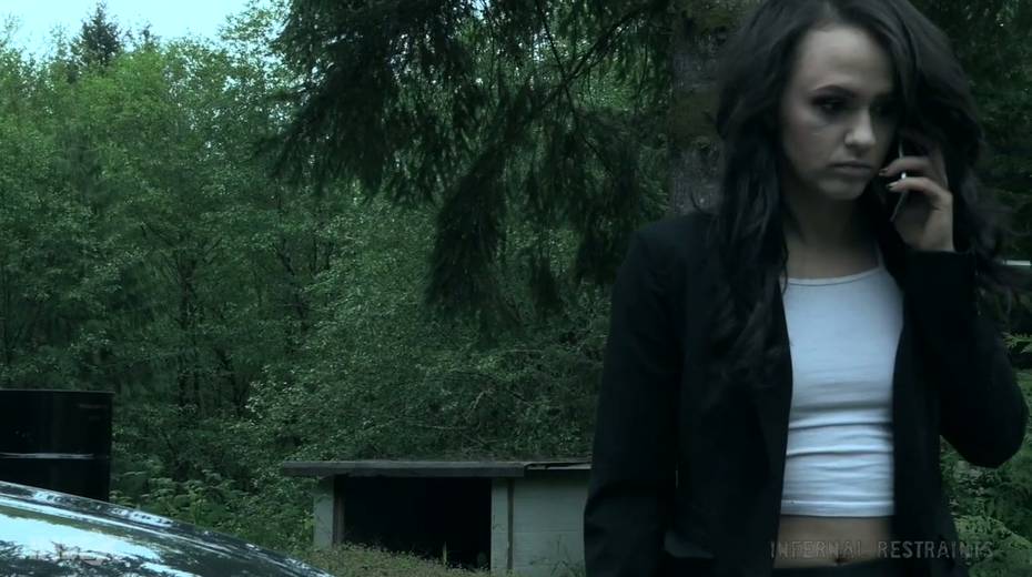 Tied up chick Alex More is punished by one kinky bearded dude