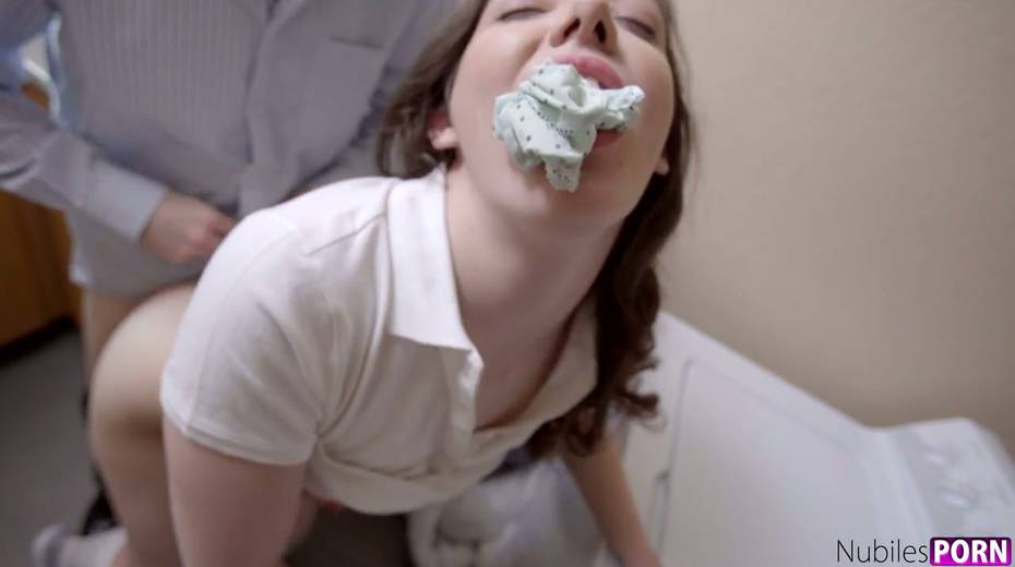 Stepdaughter Ember Stone was caught during masturbation in the laundry room