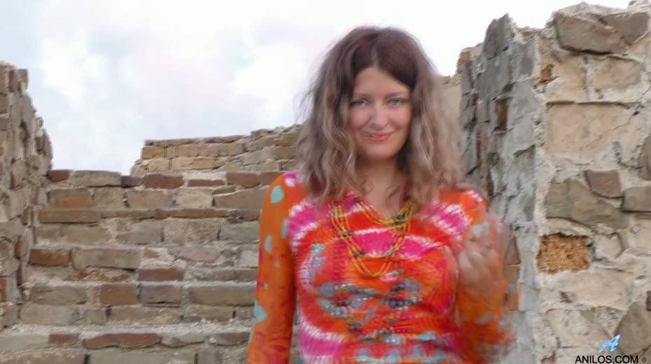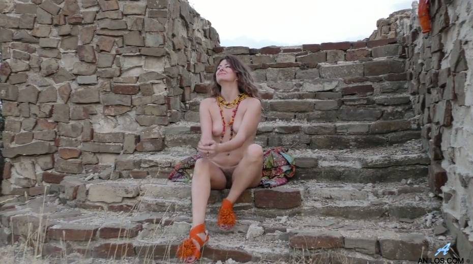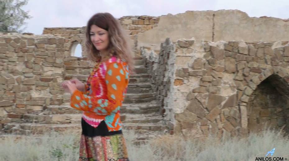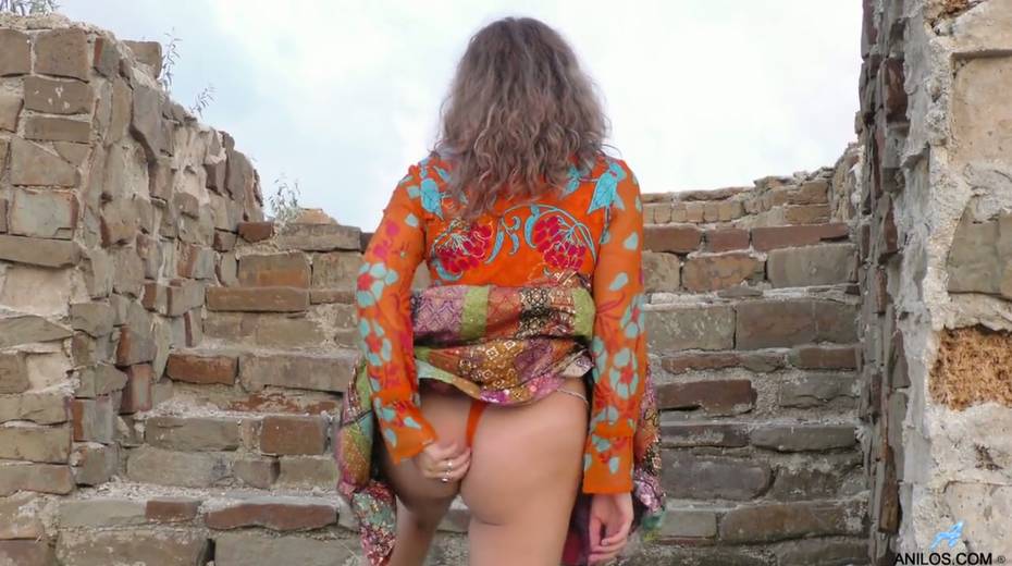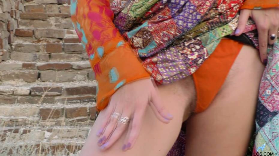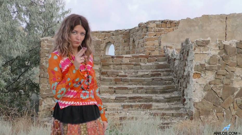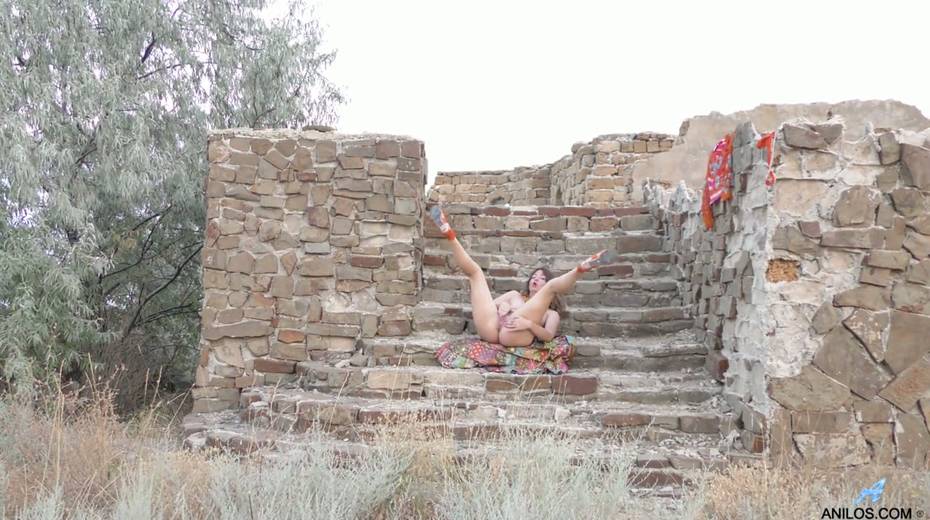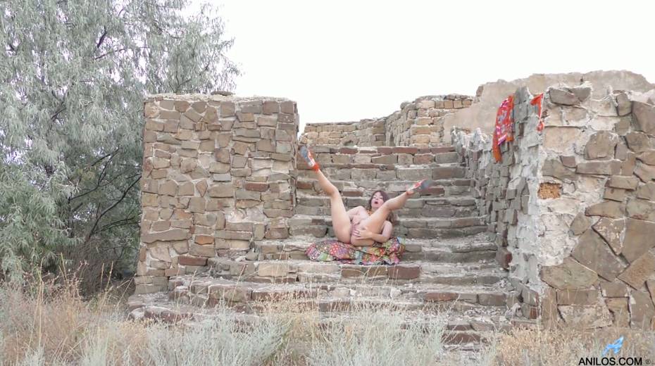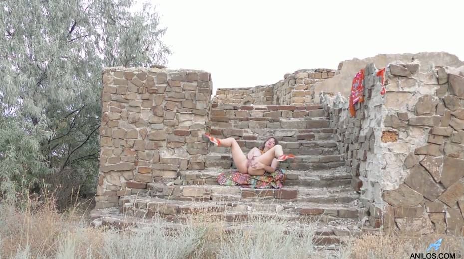 Russian porn model Helena Volga is masturbating her pussy outdoor