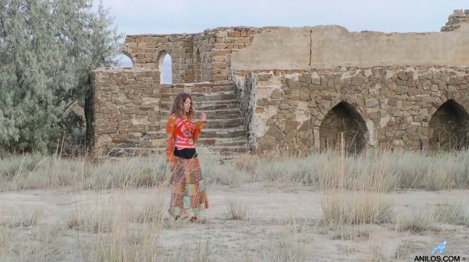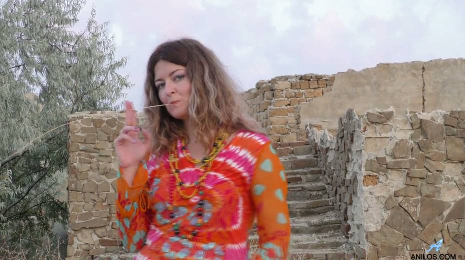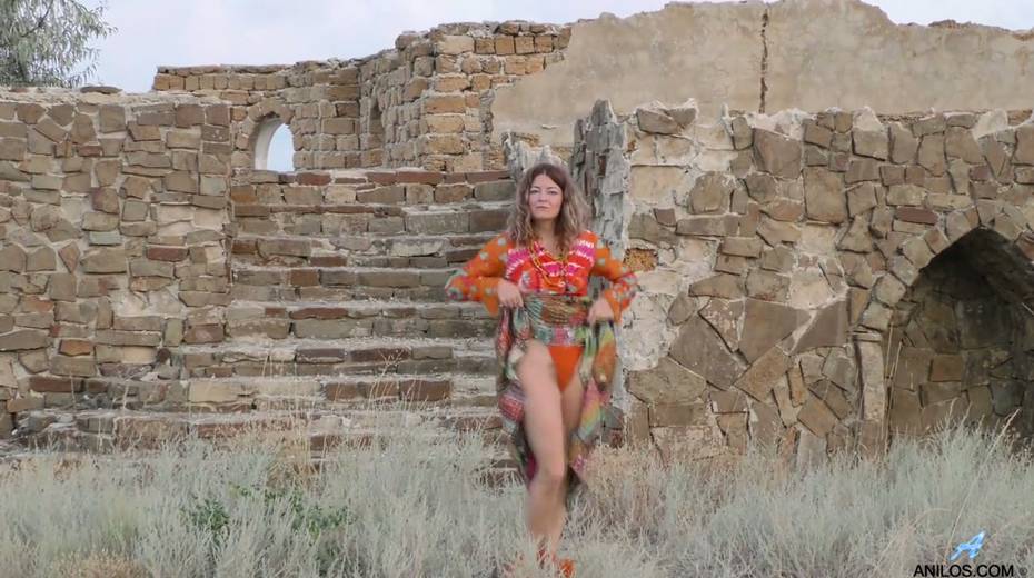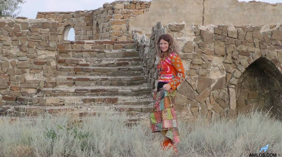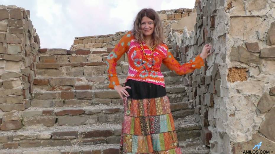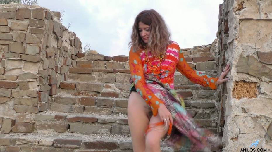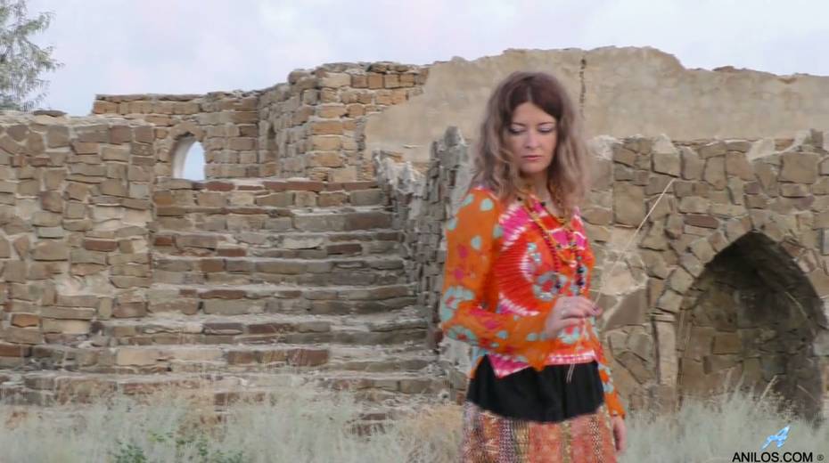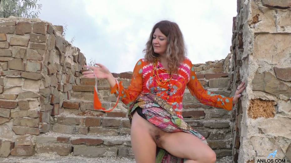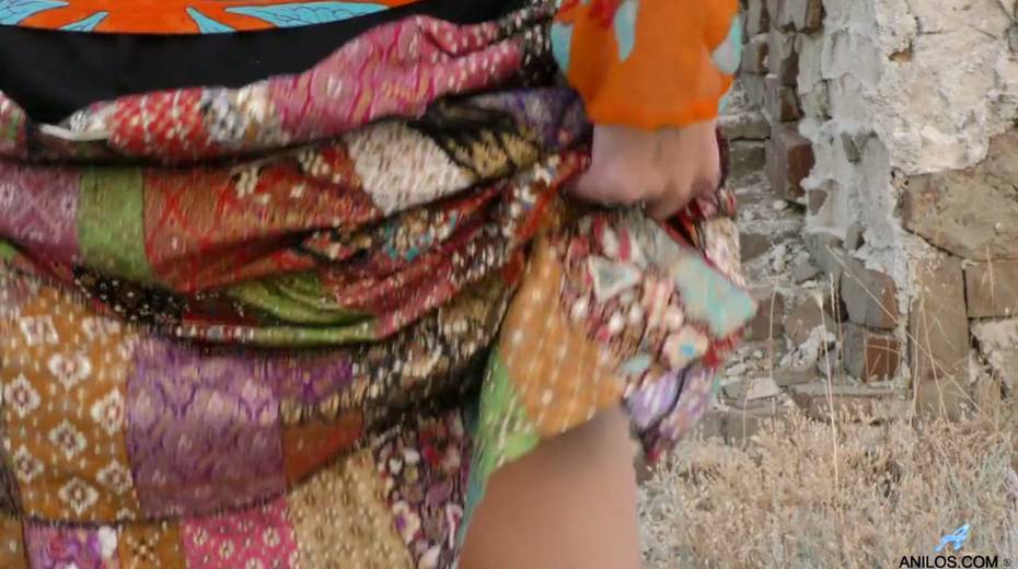 Russian porn model Helena Volga is masturbating her pussy outdoor