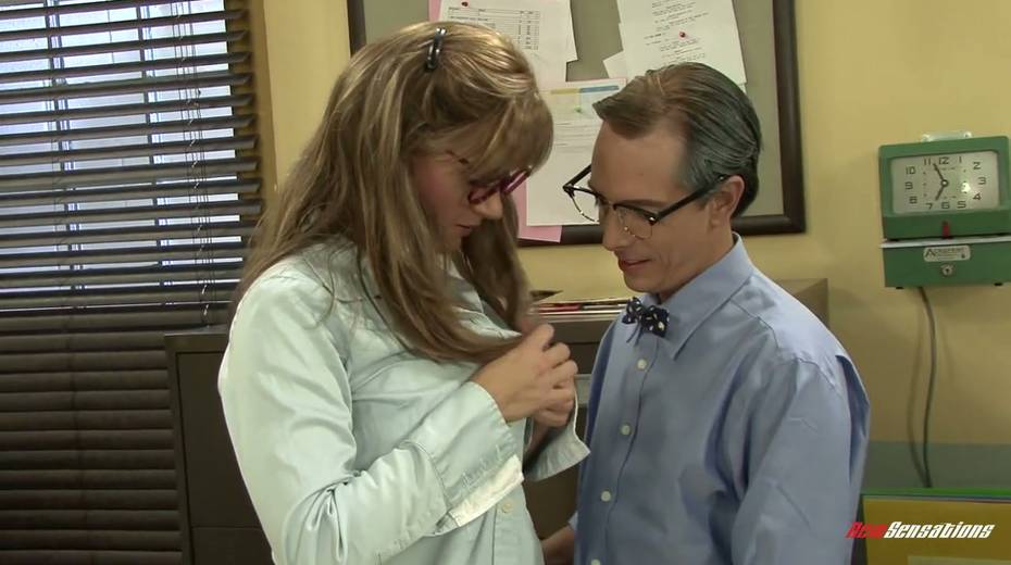 Nerdy assistant in glasses Andy turned to be very hot and insatiable