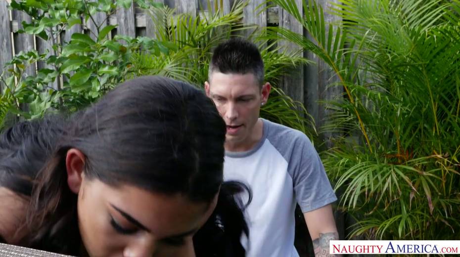 Tantalizing Latin babe Julz Gotti gives outdoor blowjob and gets fucked in the kitchen