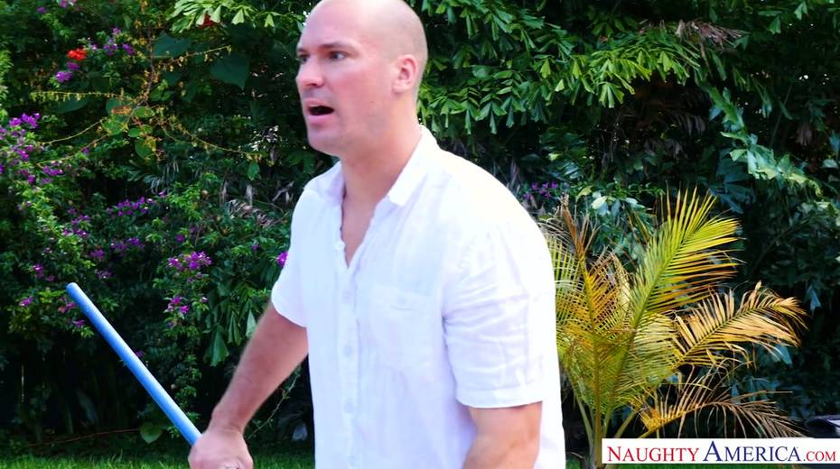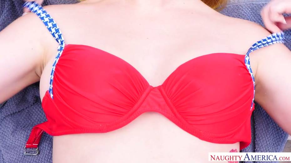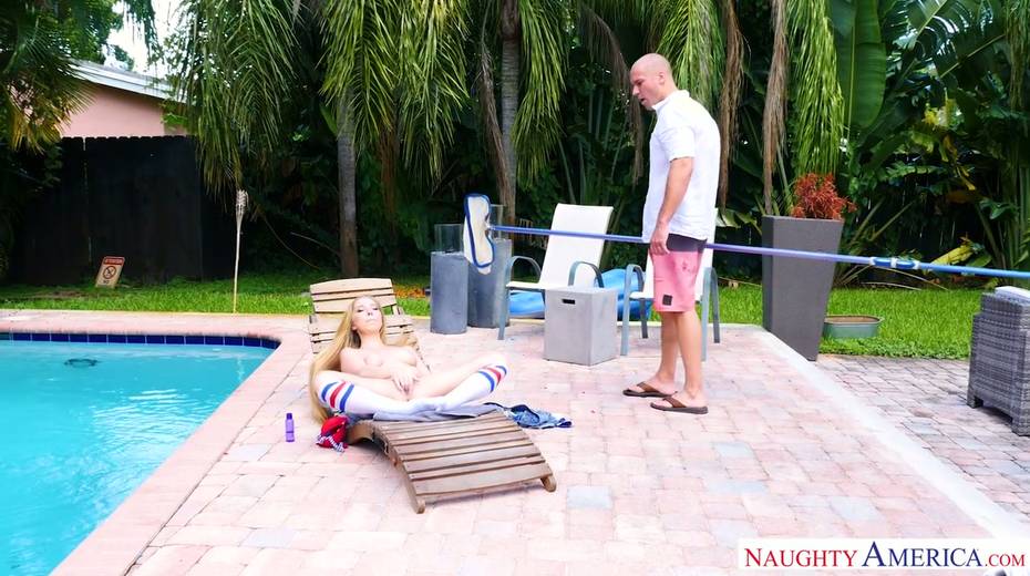 Sexy sister's friend Macy Marx rides a dick and gives a blowjob by the poolside