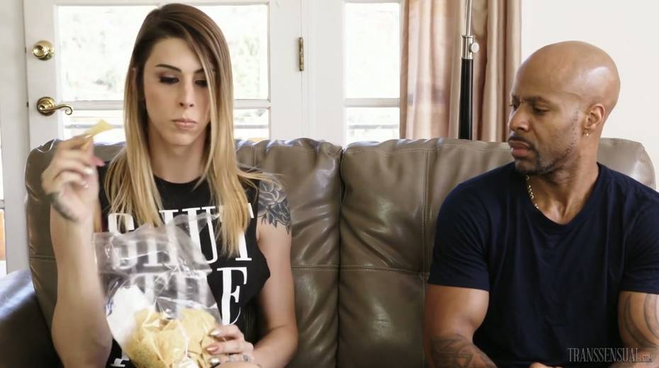 Sensual T-girl Casey Kisses enjoys having interracial sex for the first time