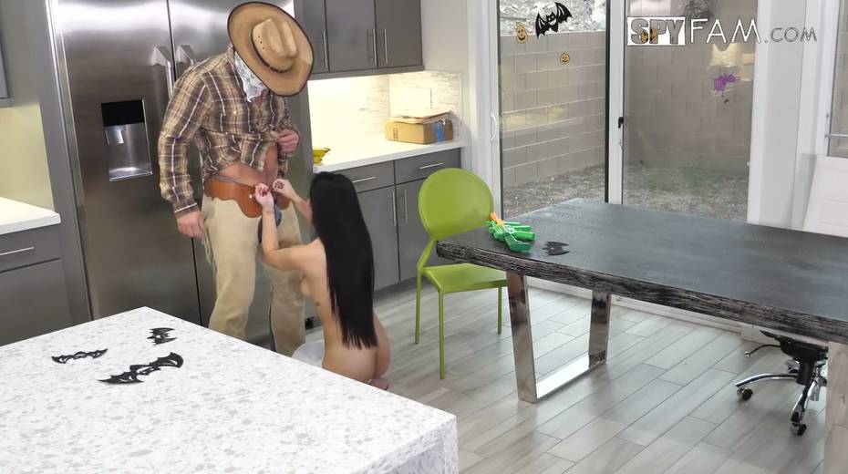 Juggy cosplay Asian babe Jade Kush enjoys crazy sex on the kitchen table