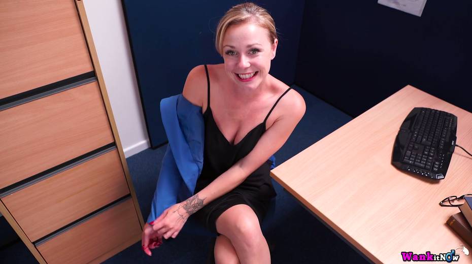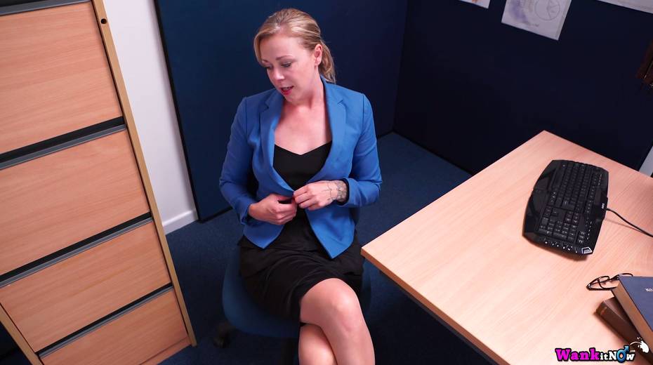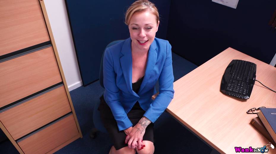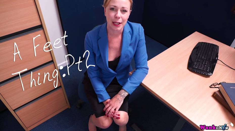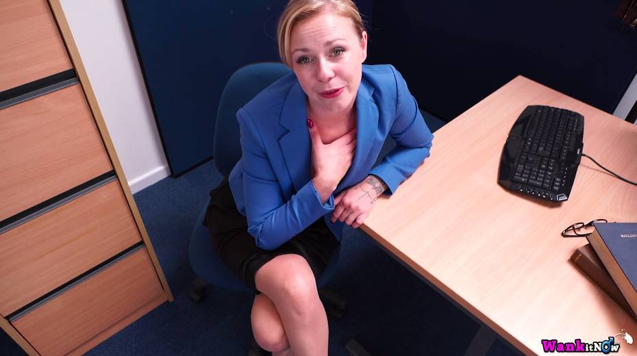 Sultry bookkeeper Lucy Lauren gives a POV footjob and blowjob