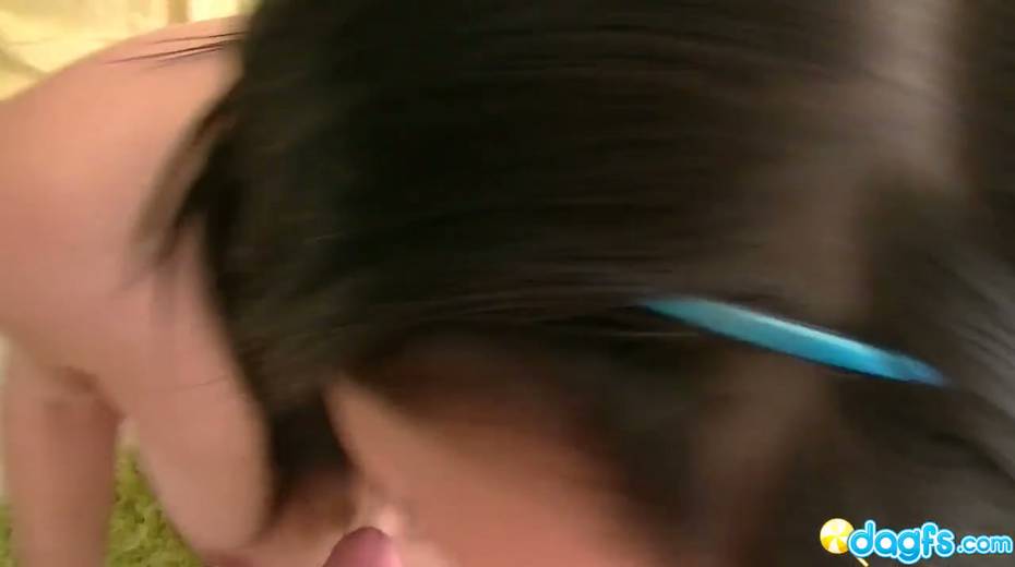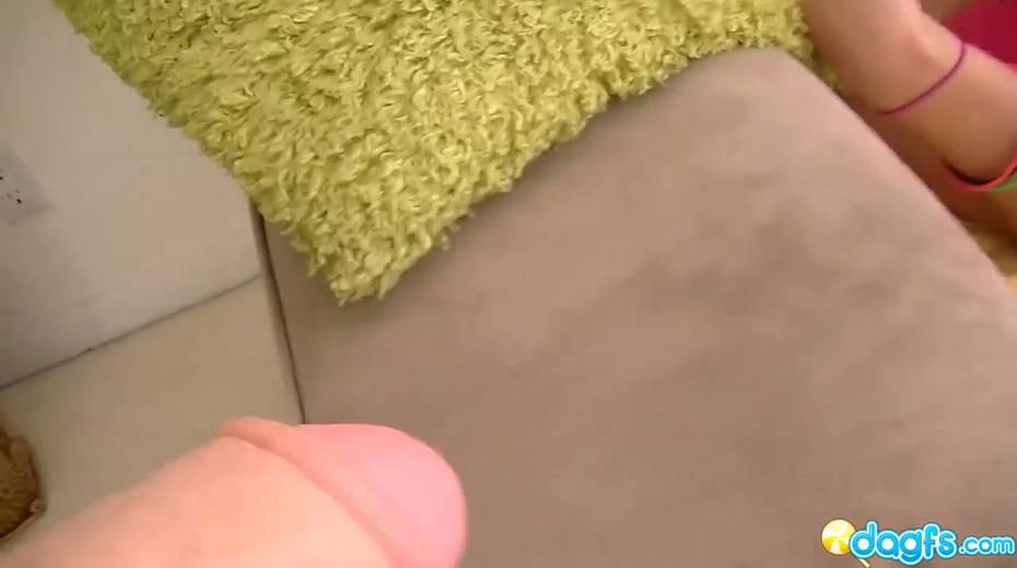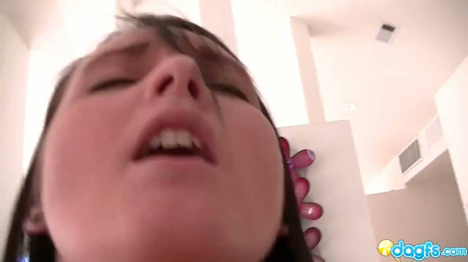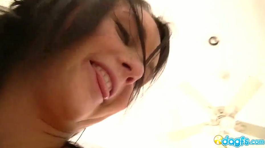 Young brunette girlfriend Elena Sin is playing with dildo before a steamy POV sex
