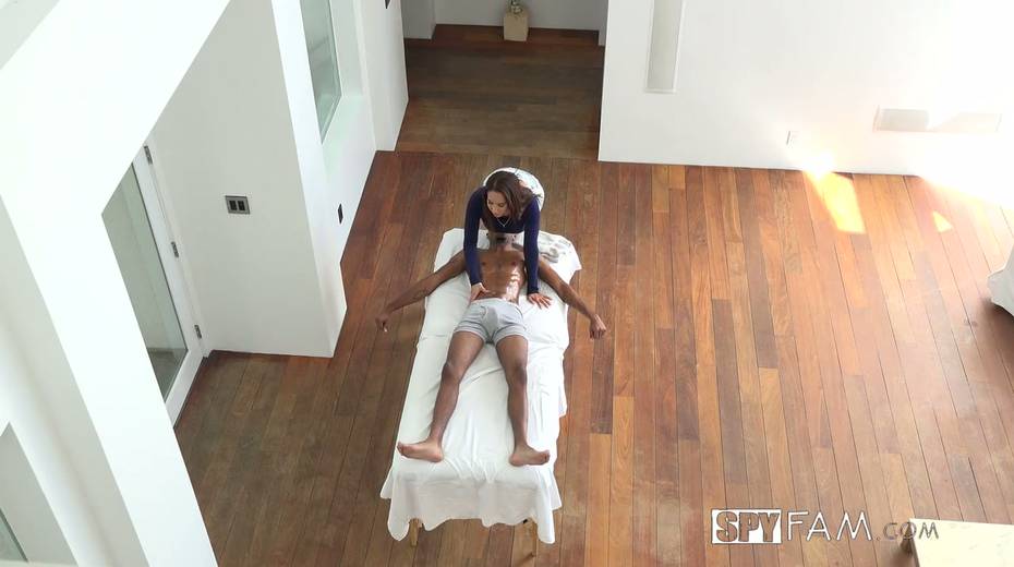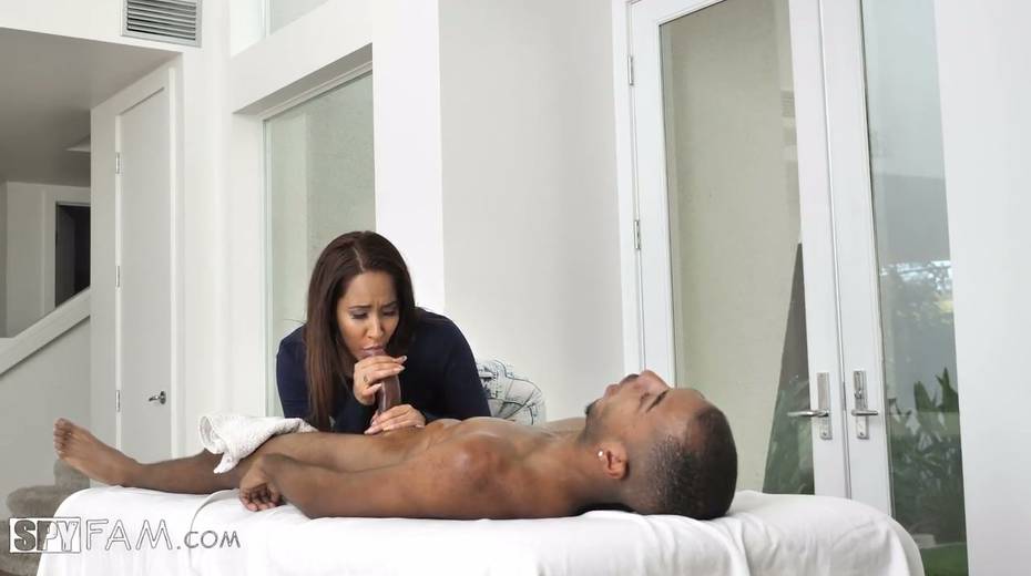 Gorgeous white masseuse Isis Love gets her mouth and pussy blacked