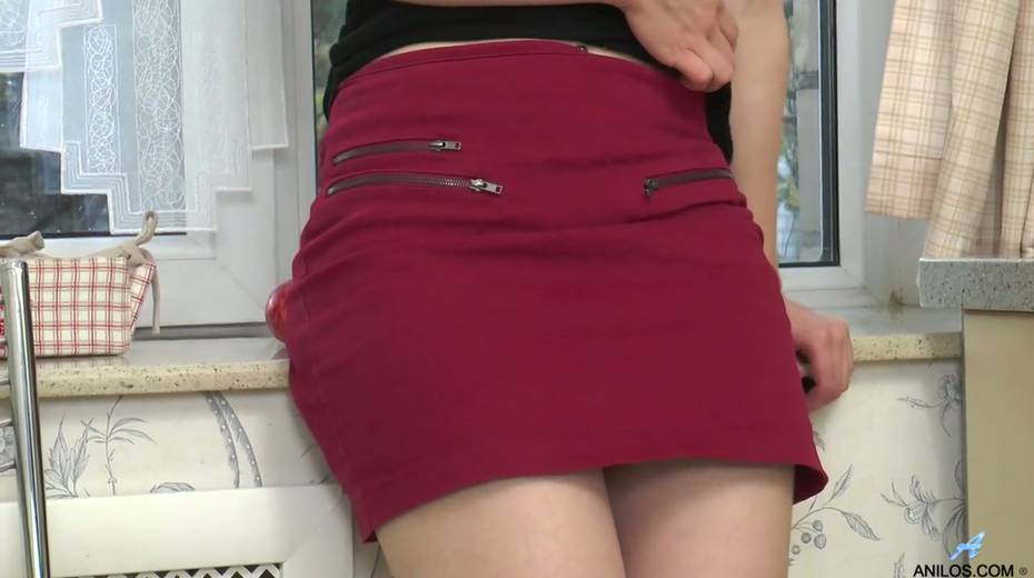 Young housewife Lisa Young is playing with her alluring pussy in the kitchen