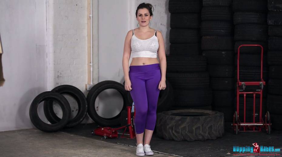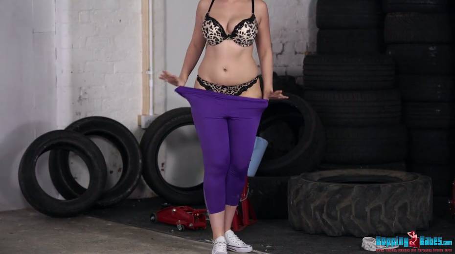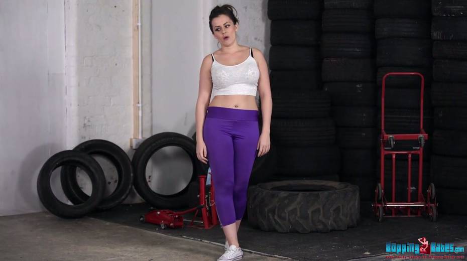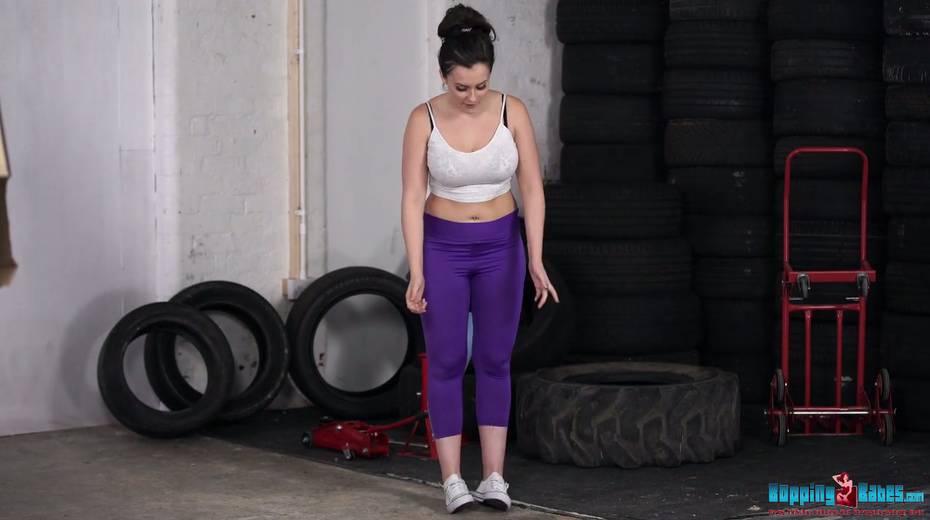 Slutty brunette Charlie Rose is stripping in the tire shop
