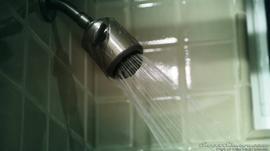 Sensual babe Dillion Harper is taking a shower before passionate sex with her BF
