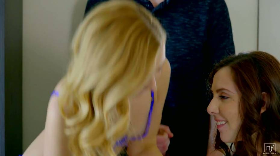 Alluring babes Ember Stone and her GF are fucked by one horny guy