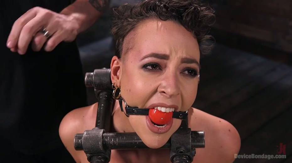 Tied up and restrained Lilith Luxe is squirting in the dark basement