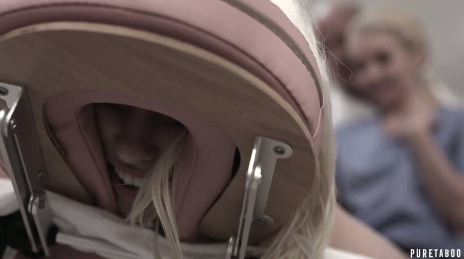 Assistant Aaliyah Love watches how masseur drills sexy blond chick