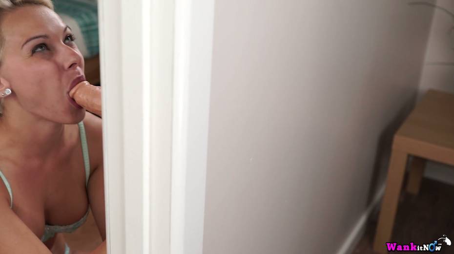 Blonde Chloe Toy is sucking her favorite suction cup dildo toy