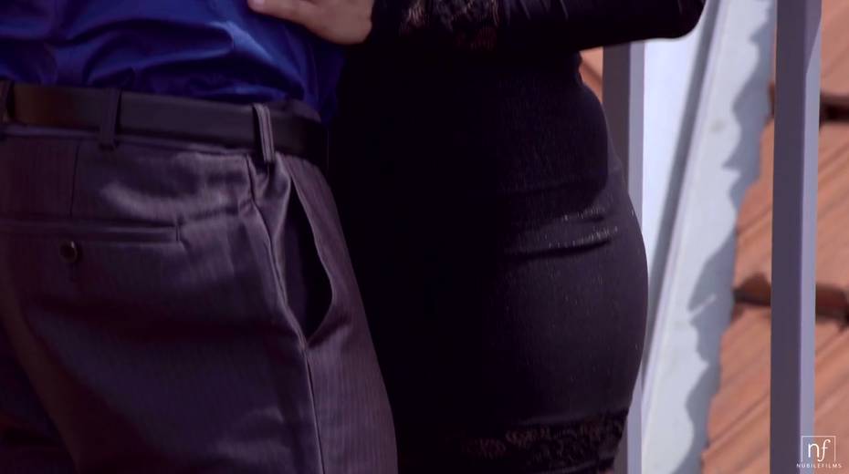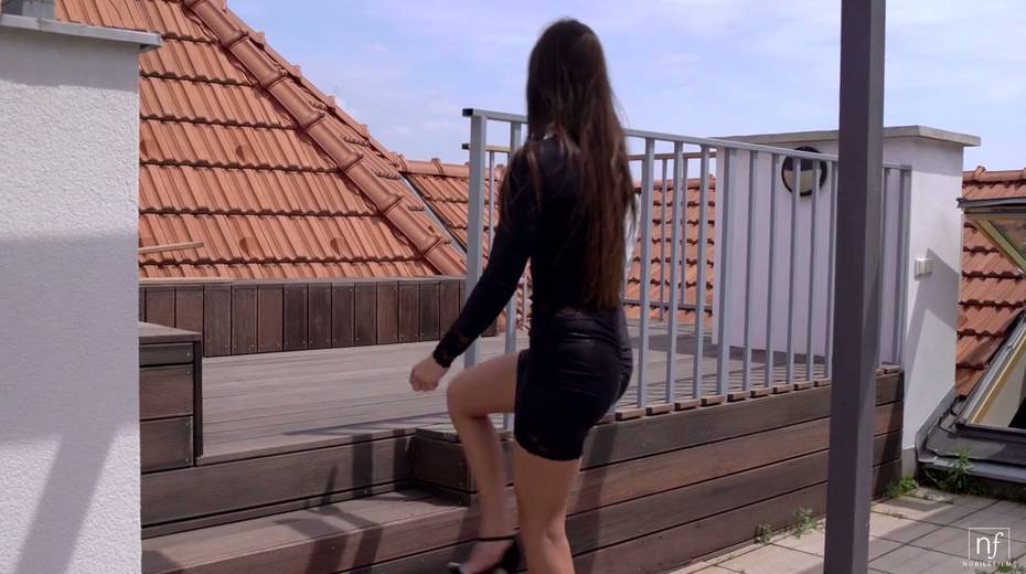Romantic date on the roof ends up with passionate sex on the white couch