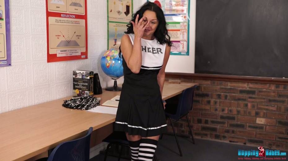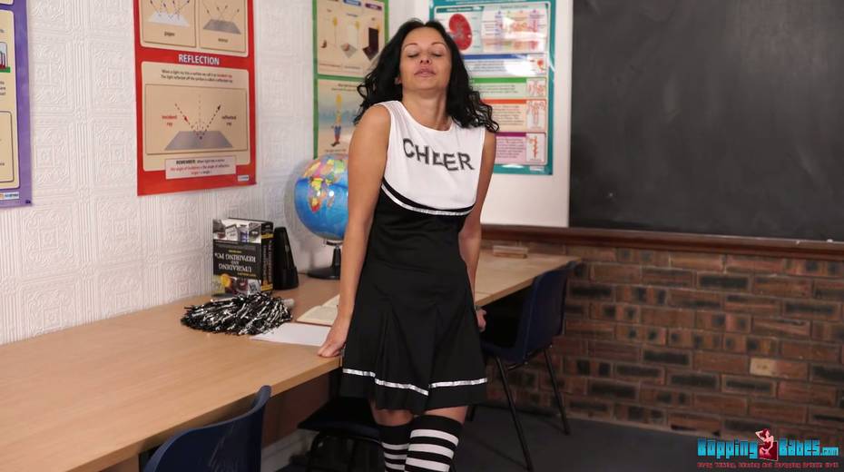 Playful cheerleader Cassie Clarke shows off her yummy pussy and nice ninnies