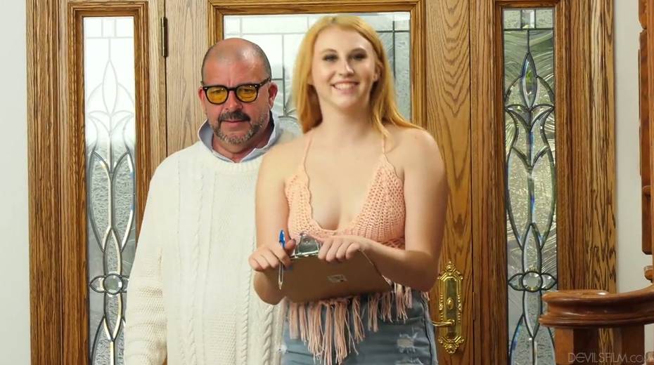 Old fart fucks naughty teen Kinsley Anne and cums on her face