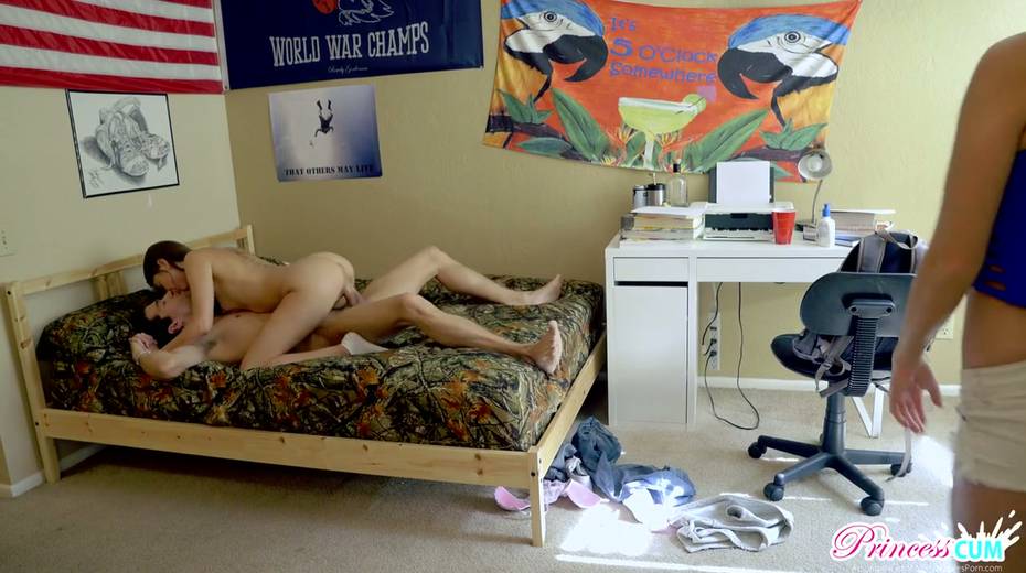 Sensual teen Riley Reid and her blond GF are fucked and jizzed by one college fellow