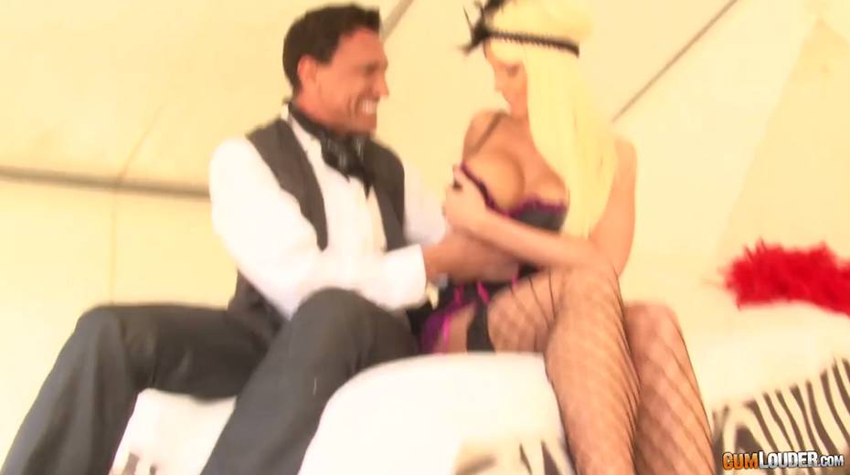 Complete whore in fishnets Rikki Six serves her client at the highest level