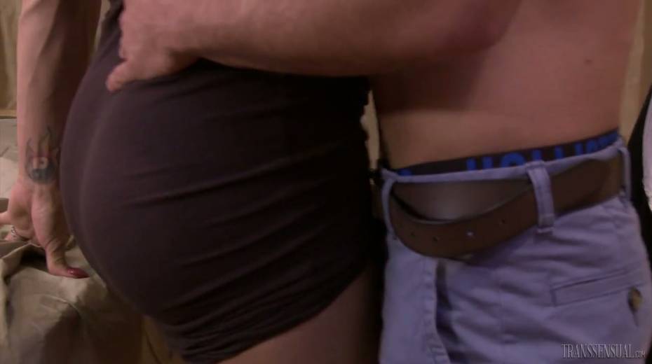 Handsome tattooed jock fucks anal hole of fake tittied tranny Jessy Dubai