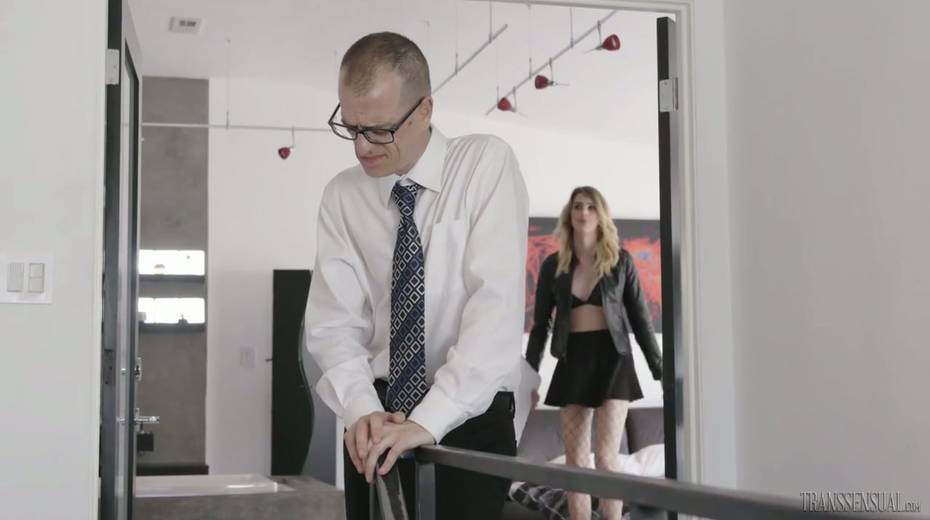 Tall shemale in fishnets Casey Kisses fucks anal hole of one bald headed dude