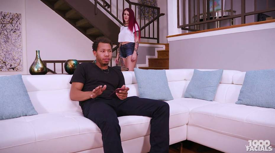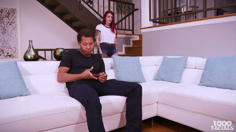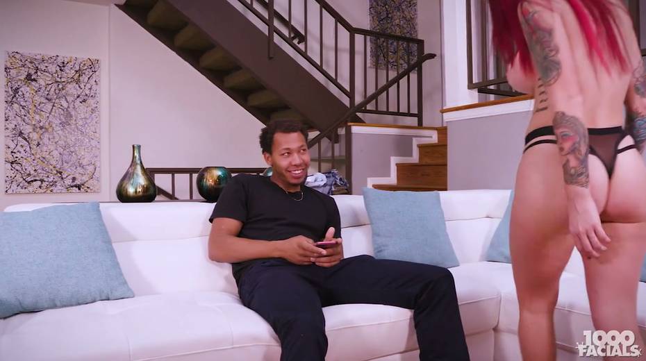 Red haired hooker Tana Lea gives a professional blowjob and gets facial