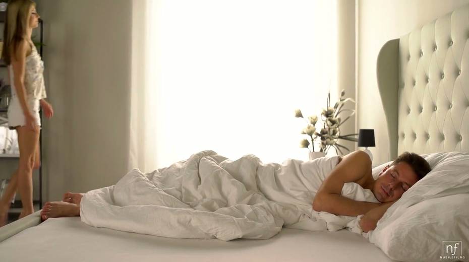 Sweet angel Gina Gerson wakes up her boyfriend with a sensual blowjob early in the morning