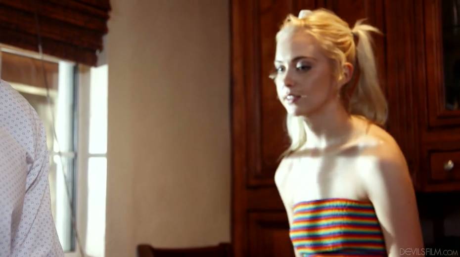 Cute pigtailed blonde Chloe Cherry gets her pussy fucked on the kitchen table